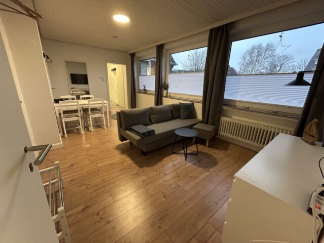Die Ferienwohnung 3 im Haus „Vier Nordlichter“ ist modern eingerichtet und ideal, wenn du es gern ruhig, praktisch und nah am Grünen magst. Dank Schlafsofa ist die Wohnung perfekt für 2 Personen – und bei Bedarf auch für bis zu 3 Gäste (z. B. mit Kind). Hunde sind willkommen (bitte bei der Buchung anmelden).